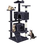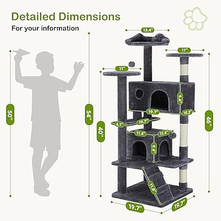 Model: DUMOS 54-inch Indoor Cat Tree Tower –Multi-Level Pet House for Large Cats with 2 Condos, Scratching Posts, Round Platform, Small Ladder, and Toys – Perfect for Cats of All Ages, Dark Grey