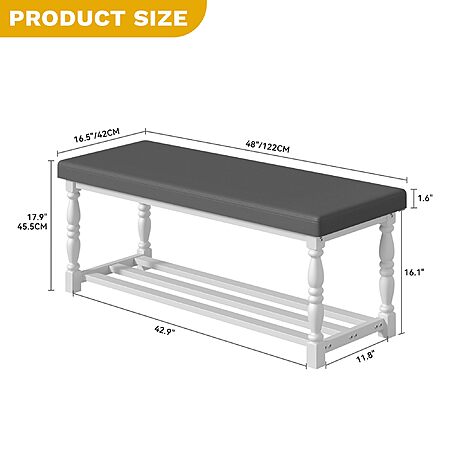 DWVO 48"L Entryway Shoe Storage Bench with Cushioned Seat $50 + Free Shipping