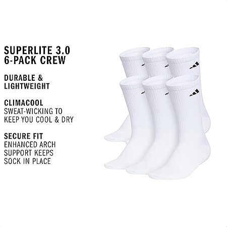 $15.40 | 6-Pack adidas Men's Superlite 3.0 Crew Socks at Amazon