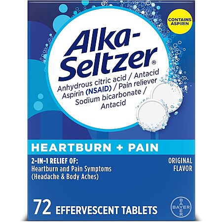 72-Count Alka-Seltzer Heartburn + Pain Effervescent Tablets (Original)