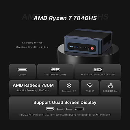 BOSGAME M4 Neo Mini PC: Ryzen 7 7840HS, 32GB DDR5, 1TB Gen4 SSD, USB4, OCuLink, Dual 2.5G Lan, Win11P @ $509 + F/S