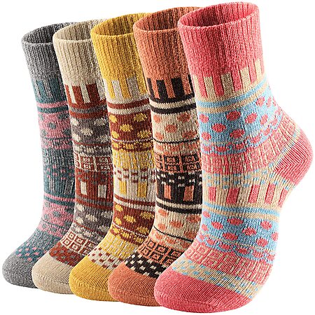 5 pair Wool Blend Socks for Women - Winter Sock for Womens Warm Thick Knit Wool Blend Soft Vintage Casual Crew Socks $3.99 Prime FS
