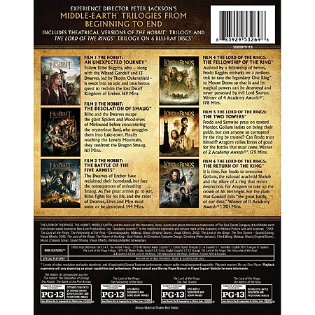 The Hobbit Trilogy / The Lord of the Rings Trilogy: 6-Film Theatrical Versions (Blu-ray) $24.99
