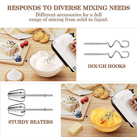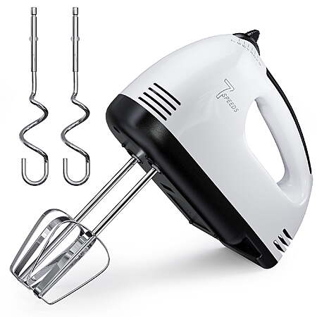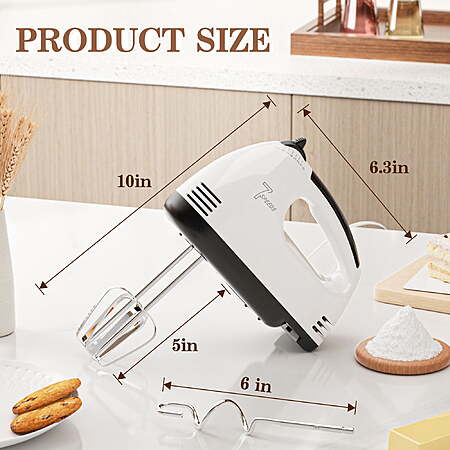 Model: TINANA 7 Speed Hand Mixer Electric Handheld with Stainless Steel Beaters & Dough Hooks, Cookie Mixer with Turbo Boost, Food Beater for Kitchen Baking Cakes, Eggs, Cream, White