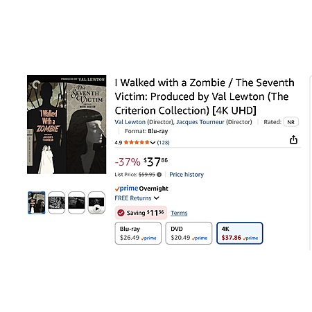I Walked with a Zombie / The Seventh Victim (The Criterion Collection) [4K UHD] $26.50 with coupon YMMV region specific Amazon