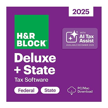 H&R Block Tax Software Deluxe + State 2025 Win/Mac [PC/Mac Online Code] $36.99