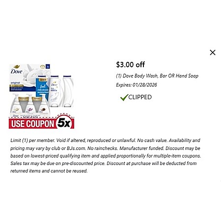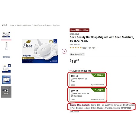 BJs members: 16-ct Dove Beauty Bar Soap (5 varieties) for $11.49 (also, $5 off $30) +FS