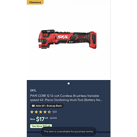 In Store Purchase Only: SKIL PWR CORE 12 12-Volt Brushless Variable Speed Oscillating Multi-Tool $17.49