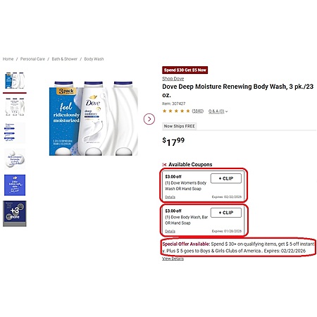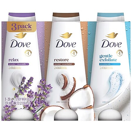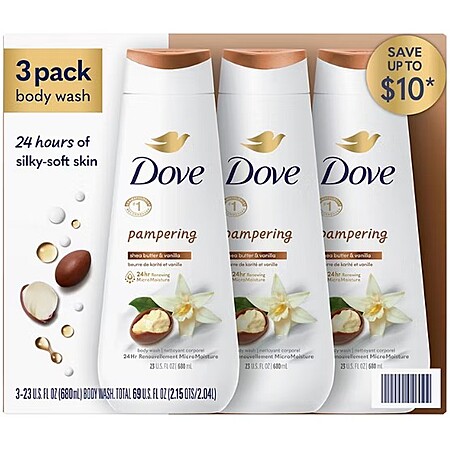 BJs members: 3-pack 23oz Dove Body Wash (7 varieties) for $11.99 (also, $5 off $30) +FS