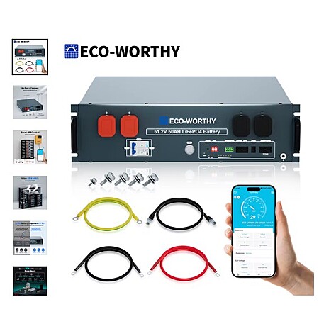 ECO-WORTHY 48V 50Ah LiFePO4 Server Rack Battery, 3U Rack-Mount Lithium Battery with Bluetooth & Wi-Fi, Smart BMS, CAN/RS485 Comm $380 AC $379.63