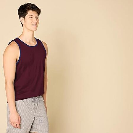 $3.34 | Amazon Essentials Men's Regular-Fit Sleeveless Tank Tops (Blue Burgundy, XS) at Amazon