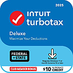 Sam's Club Members: Intuit TurboTax 2025 Tax Software + $10 Credit Towards In-Product Add-Ons: Deluxe (Federal+State) $44.99 & More (PC/Mac Download)