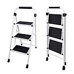 Amazon.com has DUMOS Step Ladder, 3 Sturdy Step Stool with Anti-Slip Pedal & Comfortable Handrail, Portable Heavy Duty Step Stool for Kitchen, Garage & Outdoor Use, 330lbs, Black on sale for $27.99.