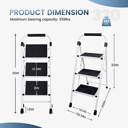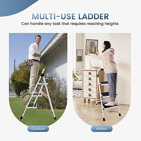 - 【Multi-use Ladder】3 step ladder for home is perfect for any task - from changing light bulbs and reaching high shelves to indoor/outdoor painting projects. An essential for every home, kitchen, garage, office, or workspace.