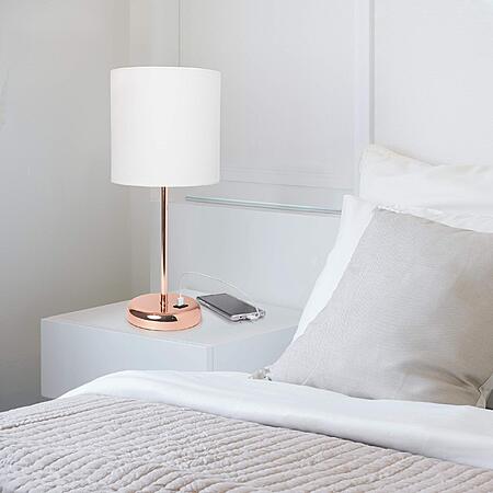 Amazon.com has Simple Designs LT2044-RGD Rose Gold Stick Table Desk Lamp with USB Charging Port and Drum Fabric Shade, White Shade on sale for $13.97.