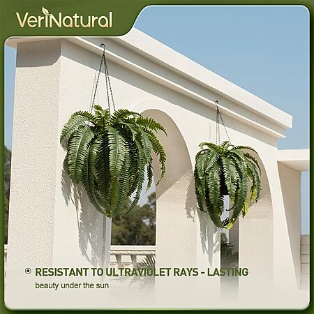 Amazon.com has Artificial Boston Ferns 48" UV Resistant Faux Ferns With 33 Fronds for Outdoors - Large Fake Plants for Home, Garden, Front Porch and Hanging Decor - Lifelike Greenery for Indoor Spaces,VN141 on sale for $14.