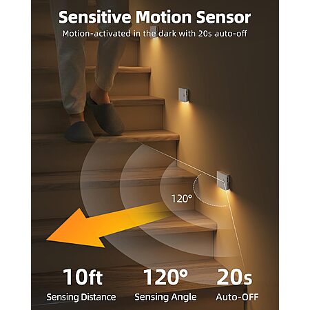 • Motion Sensor Light Indoor: Our stair lights detect movement up to 10ft/120° away in a dark or low light environment (less than 30 lux), turning on a soft glow to illuminate your path at night, then auto-off after about 20s of no motion detected to save energy. The guiding light provides hands-free safety and adds cozy light to warm your night.