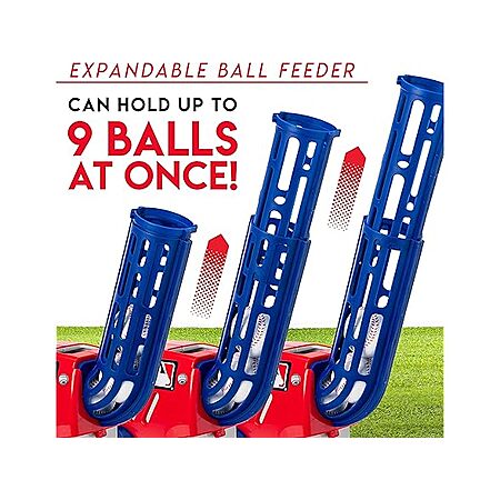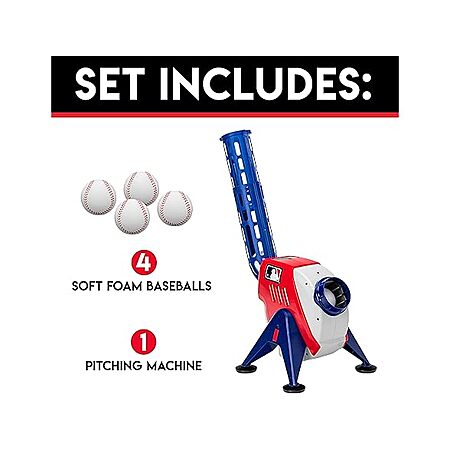 - BALLS INCLUDED: This pitching machine comes with 4 compatible foam baseballs to put in the ball feeder which can hold up to 9 balls at once.