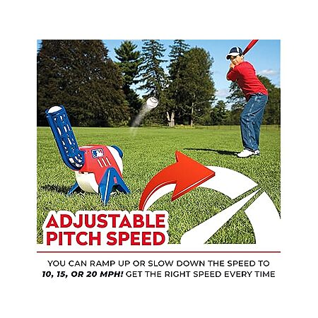 - ADJUSTABLE PITCH SPEED : You can ramp up or slow down the speed to 10, 15, or 20 mph so you get the right speed every time. The balls pitch every 7 seconds, and the red light indicates the pitch release so kids are ready for the ball to come each time.