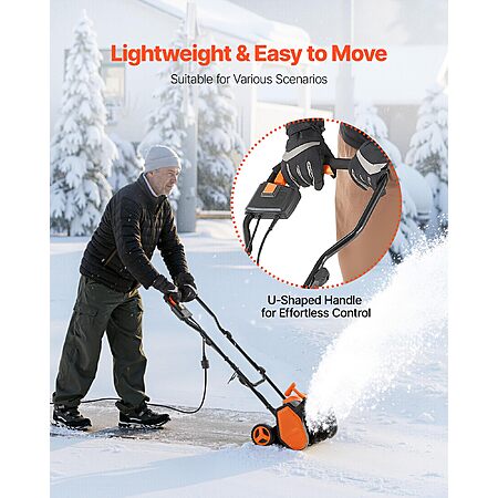 - Lightweight and User-Friendly: Weighing just 18.08 lbs / 8.2 kg, this unit is easy to handle. The electric snow thrower is lightweight and user-friendly for everyone. Great for clearing snow in patios, sidewalks, driveways, small yards, porches, and entryways.
