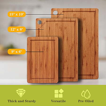 AOKIWO Supply via Walmart.com has 3 Pcs AOKIWO Bamboo Cutting Board, Durable Wood with Juice Grooves & Handles, Ideal for Meat, Vegetables on sale for $15.99.