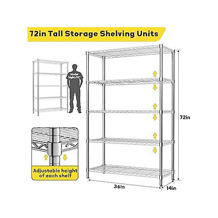 MODCART 5-Tier Storage Shelves, 36" L x 14" W x 72" H - $49.99 + free ship w/ Prime
