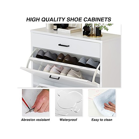 - Large Storage: Features two hidden flip cabinets with adjustable/removable dividers for flexible shoe storage.