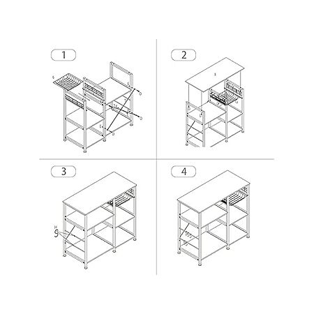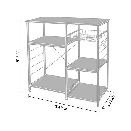 - Organized Workspace: With plenty of shelving and a 35.4" x 15.7" work surface, this rack offers ample space for a microwave, mixing bowls, and other kitchen essentials.
