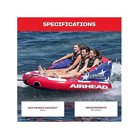 - The ultimate towable tubes for boating: The Super Mable delivers comfort, durability, versatility and non-stop thrills for up to 3 riders; our famed tube is now available in a patriotic design that makes every day on the water a celebration