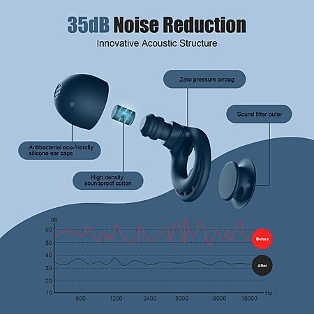 - Reusable & Comfortable: Soft silicone material, durable, and comfortable for long-term wear; noise reduction rating (SNR) of 35dB.