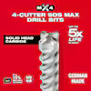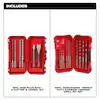 | Product Description: | The MILWAUKEE® MX4™ 4-Cutter SDS PLUS Drill Bits with solid head carbide deliver up to 5x longer life in concrete with rebar. Engineered with rebar guards to provide maximum durability in hard aggregate and rebar. The MX4™ 4-Cutter Bits are designed with sharp centering tips for exact spot drilling in concrete and metal decking. The 4-cutter design prevents lock-up in rebar, reducing downtime. Variable flutes remove dust faster, reducing heat and delivering up to 20% more holes per battery charge. The wear mark indicator on each drill bit shows you when the bit no longer meets the ANSI requirement. Ideal for concrete with rebar and masonry applications. MILWAUKEE® SDS Plus Chisels are made from high-grade, forged steel, providing up to 20% longer life. This kit includes (1) 5/32", (1) 3/16", (1) 1/4", (1) 3/8" MX4™ 4-Cutter SDS PLUS Rotary Hammer Drill Bits and (1) 5-1/2" Flat, (1) 5-1/2" Bull Point SDS Plus Chisels. Packaged in a medium, double-sided hard case designed for use in the MILWAUKEE® PACKOUT™ Storage System. The MILWAUKEE® SHOCKWAVE Impact Duty™ Carbide Hammer Drill Bits use sharpened carbide to deliver up to 5x longer life in concrete and up to 2x faster drilling into masonry material. Engineered with a precision ground tip, these bits deliver faster starts and less walking in concrete, brick, and block. This kit includes (1) 1/8”, (1) 5/32", (2) 3/16", (1) 7/32”, (2) 1/4", (1) 5/16", (1) 3/8“, and (1) ½” SHOCKWAVE Impact Duty™ Carbide Hammer Drill Bits. |