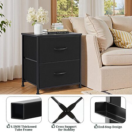 - 【2-Drawer Nightstand with Storage】 Features 2 removable fabric drawers and a durable wooden top, providing ample space for nighttime essentials, books, electronics, or personal items. Perfect compact dresser for bedrooms, dorms, and apartments.