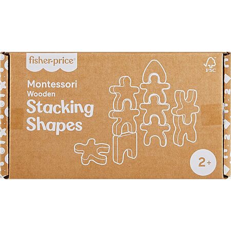 Model: Fisher-Price Wood Montessori Toy Stacking Shapes, American Montessori Society Seal of Excellence, 16-Piece Wooden Learning Activity & Expert Play Tips for Kids Ages 2+ Years (Amazon Exclusive)