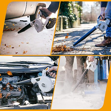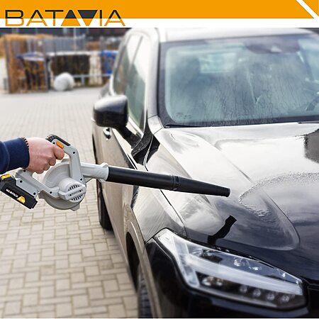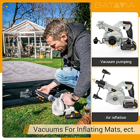 【Dual Nozzles for Versatile Use】The BATAVIA cordless leaf blower includes 2 nozzles: one for cleaning workshops, yards, and vehicles, and another for inflating/deflating items like bounce houses and air mattresses, offering multiple uses from a single tool