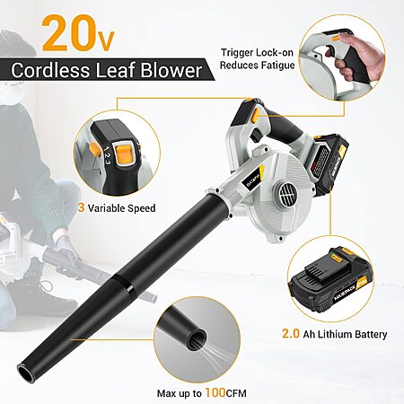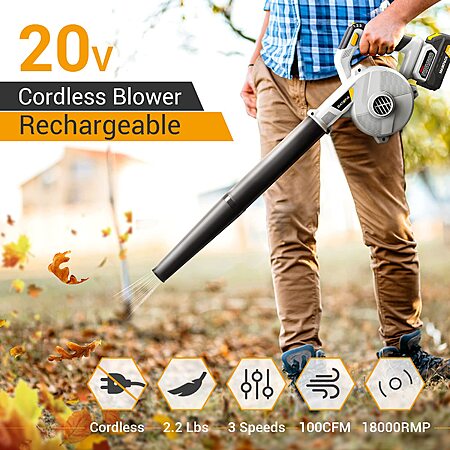 【20V MAX Cordless Leaf Blower with Battery & Charger】Experience maximum mobility with the BATAVIA 20V cordless leaf blower, featuring a 2.0Ah battery and charger. This BATAVIA handheld leaf blower moves effortlessly around your yard, making it easy to clean driveways, decks, and patios without the hassle of a heavy machine