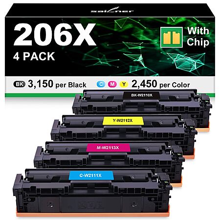 Deal on compatible HP 206X / 206A toner cartridges (4-pack, with chip).