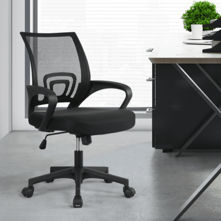 | Product Description: | Get extra comfortable in the Alden Design Adjustable Mesh Swivel Office Chair with Armrests. This easy assembly sturdy office chair is perfect for long work days. In this rendition of our office chair, we have increased the seat size and cushion for optimal comfort. The small lever under the cushioned seat allows you to adjust and customize the chair to your perfect seat height. Featuring a densely knitted mesh backrest, this mesh office chair allows better airflow, accelerating heat and moisture dissipation. The mid-back design supports your spine's natural curve and protects your lower and middle back as it prompts you to sit straight. The chair material is comprised of steel, iron, PP, nylon, mesh, foam, nonwoven fabric, and composite boards. Our chair comes with a user manual, and please for your safety do not stand on this chair. This is a basic mesh chair, and the backrest is only for supporting your back while sitting. It is not suitable for people to lean back too far, otherwise, the backrest might be cracked. Age group:adult 【Breathable Mid-Back Design】Featuring densely knitted mesh backrest, this mesh office chair allows better airflow, accelerating heat and moisture dissipation. Mid-back design supports your spine's natural curve and protects your lower and middle back as it prompts you to sit straight 【Adjustable Seat Height】The seat height of this computer mesh chair can be simply adjusted from 18’’ to 22’’ by a little push-up/press down at the lever under the seat according to your needs 【Ergonomic Backrest Design】Curved backrest can flawlessly line up with the human body curve and support your spine’s natural curve. The lumbar support system provides consistent support to your lower back 【Quick to Assemble】To make your installation easy as possible, we’ve included illustrated instructions, necessary tools and fittings in the package for convenience. Will usually take 15 minutes for an adult to put it together 【360° Smooth Mobility】This ergonomic office chair is equipped with nylon swivel casters to make sure users can move with the chair effortlessly with a 360 degrees rotation. Sturdy materials of these five casters allow smooth and steady mobility 【Specifications】Color: black; Material: steel, iron, PP, polyester mesh, foam, non-woven fabric, plywood; Overall dimension: 24.5″ W × 24″ D × (35-39)″ H; Adjustable seat height: 18-22’’; Max. load capacity: 300 lb |