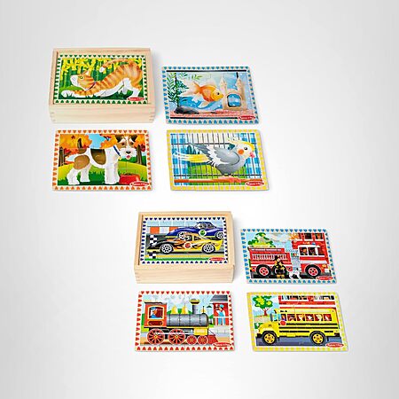 Melissa & Doug Wooden Jigsaw Puzzles in a Box 2-Pack for Preschool Boys and Girls – Pets, Vehicles $11.72