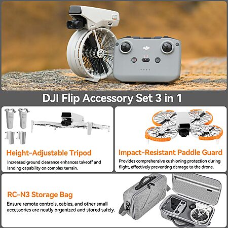 [AC] $29.99: DJI Flip Accessories Bundle, Includes Standard Controller Carry Case, Landing Gear Extension & Propeller Guards for DJI Flip Drone, 3-in-1 Essential Protective Combo
