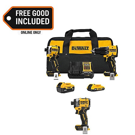 DEWALT ATOMIC 20-Volt Lithium-Ion Cordless 2-Tool Combo Kit and Cordless Impact Driver w/ 5.0 Ah, 2.0 Ah Batteries and Charger $269 + Free Shipping