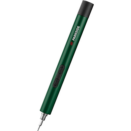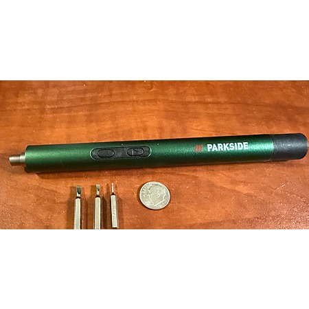 Lidl (US), an Aldi's-like grocery store chain, has a precision electric screwdriver for $10 this week. Powered by two AAA batteries (included), built in light to illuminate work area. Metallic green color. Estimated run time "up to 200 minutes". About 7" long, 17mm/ 0.65" in diameter.