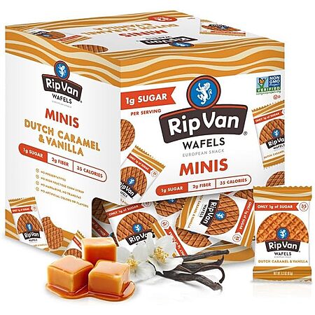 Rip Van Wafels Dutch Caramel Mini Stroopwafels, Low Carb Snacks, Non GMO Snack, Keto Friendly, Office Snacks, Low Calorie Snack, Low Sugar, 32 Pack~$11.96 With S&S @ Amazon