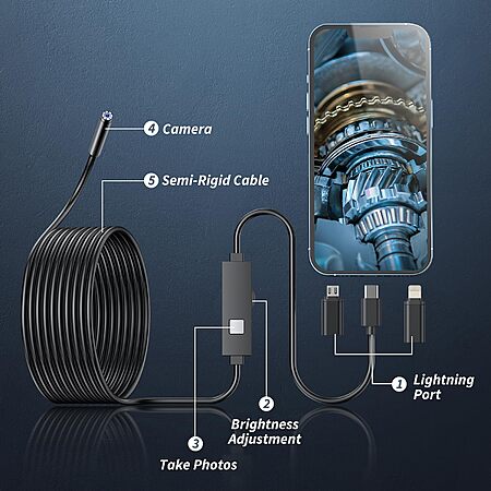 Amazon.com has Endoscope Camera with Light, 1920P HD Borescope Tools with 8 Adjustable LED Lights, Endoscope with Semi-Rigid Snake Camera, Inspection Borescope for iOS and Android - 16.4ft Single Lens on sale for $15.40. Shipping is free with Prime or on $35+ orders.