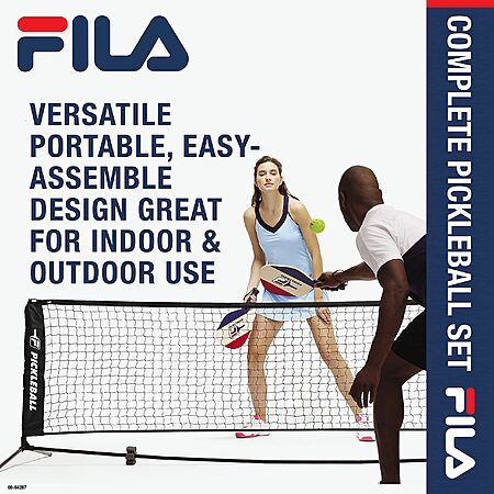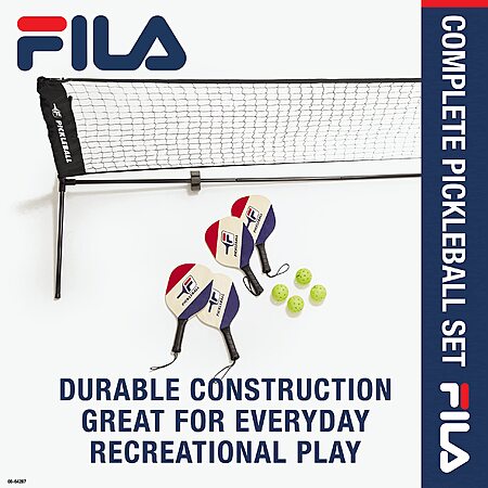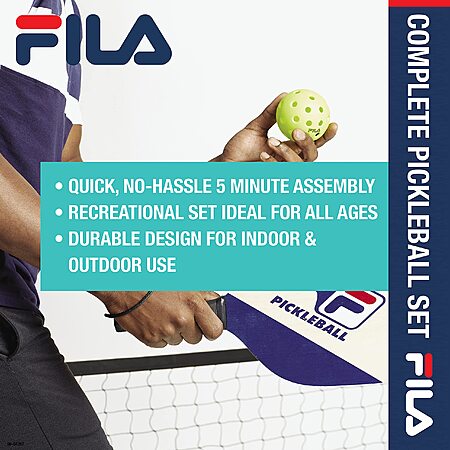 Amazon.com has FILA Accessories Pickleball Net Set - Includes Pickleball Paddles Set of 4 with Regulation Size 4 Outdoor Balls & 10ft All Weather Mesh Net for Indoor or Outdoor Use - Lightweight, Quick & Easy Setup on sale for $25.30.