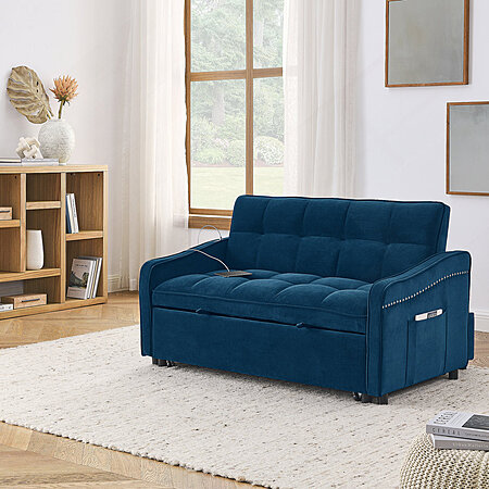 Wayfair [wayfair.com] has 53" Latitude Run Collinward W Murphy Sofa Bed Loveseat w/ Adjustable Tufted Back & USB Outlet (Blue Velvet, 31'' H X 53'' W X 36.5'' D) for $279.99. Shipping is free.