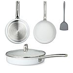 5-Piece FAB&DELUXE Nonstick Cookware Set, Aluminum Nonstick Pots & Pans w/ Glass Lids (White) for