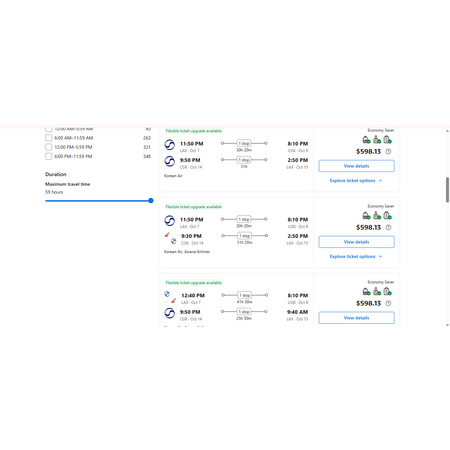 Departs LAX: Aug 3, 11, 13, 16-19, 23-27, 30-31; Sept 1-3, 7-9, 14-16, 23, 28-29; Oct 4-8, 11-12, 14-15, 18-22, 25-27; Nov 1-2, 5, 9-12, 15-18, 24, 26, 29-30