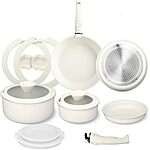 - 13-Pcs Versatile Set for All Cooking Needs: This nonstick cookware set includes 6.3"" saucepan with lid, 7.87""casserole with lid, 7.87"" fry pan, 9.45"" fry pan with lid, 11"" deep fry pan with lid, 2 detachable handles, and 2 silicone covers. Perfect for frying, simmering, steaming, or searing—ideal for home cooks, small families.