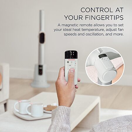 - Shark TurboBlade Cool + Heat features ultra-customizable, widespread cooling plus intelligent, personalized heating. Transform to cool or heat in vertical or horizontal modes. Cool with limitless customization and 10 speeds, or heat with 3 modes. Powerful Airflow: Bladeless technology pulls in surrounding air and circulates a powerful breeze throughout your room. Intelligent Heating: Rapidly heat with 3 unique modes, including Thermo IQ Mode which auto adjusts to maintain your selected temperature, Comfort mode, and Focus mode. Limitless Customization: Pivot fan from vertical Tower Mode to horizontal Air Blanket Mode, twist vents for cooling in multiple directions, oscillate up to 180°. Remote Control Included: With Shark's magnetic, detachable remote, you can set temperatures, choose fan speeds, select oscillation, and more. Ultra-Easy to Clean: Features true bladeless cooling, wipe-clean design, and a Dust Defense filter at the base to capture particles. Whats Included: TurboBlade Cool + Heat, Remote Control