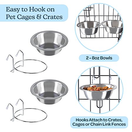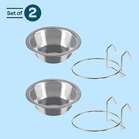 YMMV Set of 2 Stainless-Steel Dog Bowls - Cage, Kennel, and Crate Hanging Pet Bowls for Food and Water - 8oz Each and Dishwasher Safe by PETMAKER, Silver $6.80 AC